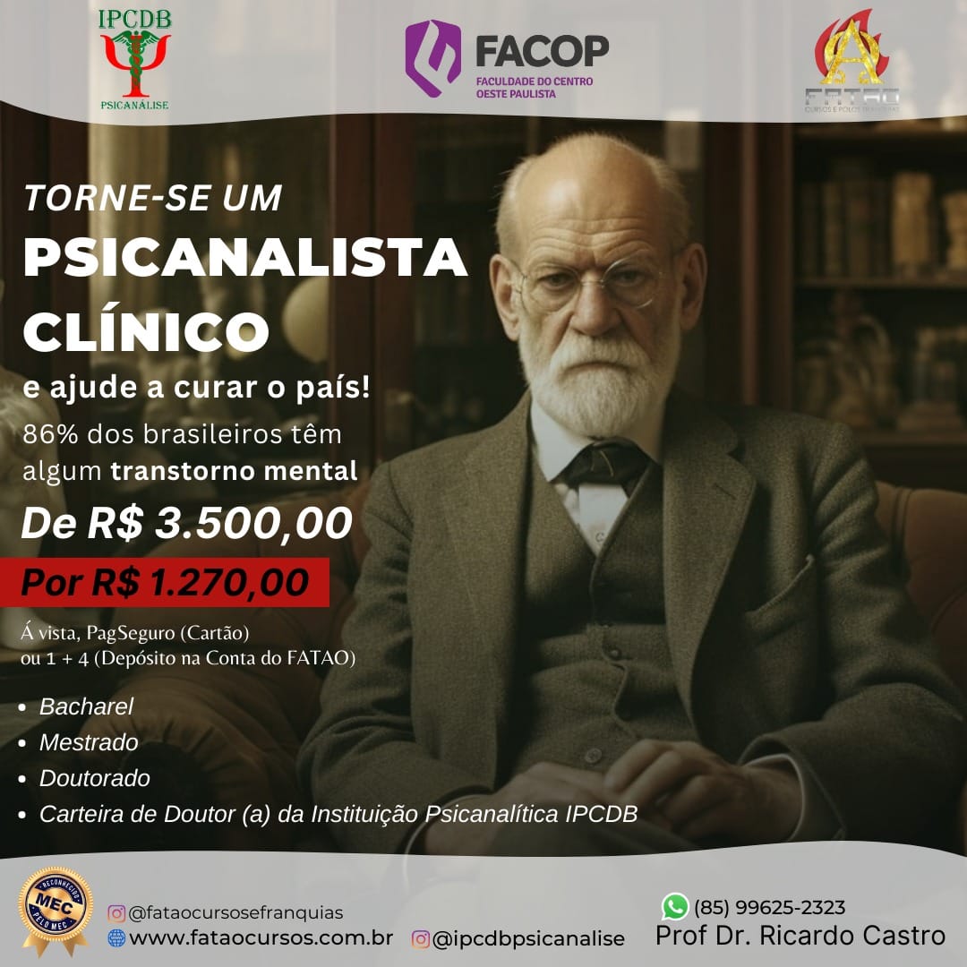 TORNE-SE UM PSICANALISTA CLÍNICO e ajude a curar o país! 86% dos brasileiros têm algum transtorno mental